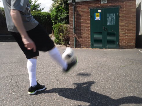 With no goalposts (or jumpers) I had to turn to a brick wall to ping balls at.