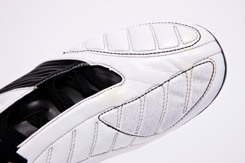 Firstly, the boot features a memory foam ‘pass pad’ on its instep to help ball control, whilst a silicon-bonded grip zone has been added to the toe to help touch and feel and allow the player to add increased loft and spin to the ball (that is the theory, anyway).