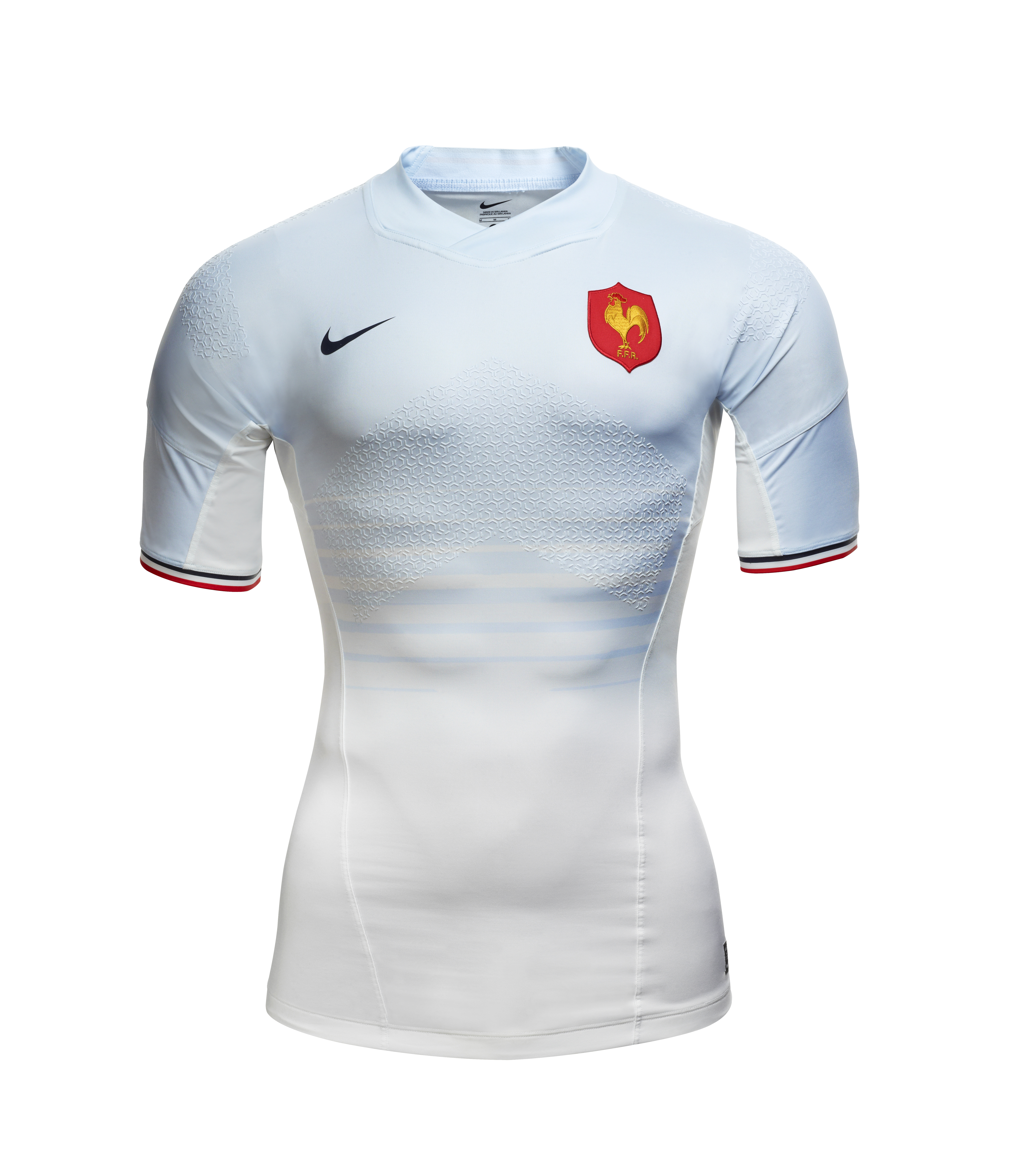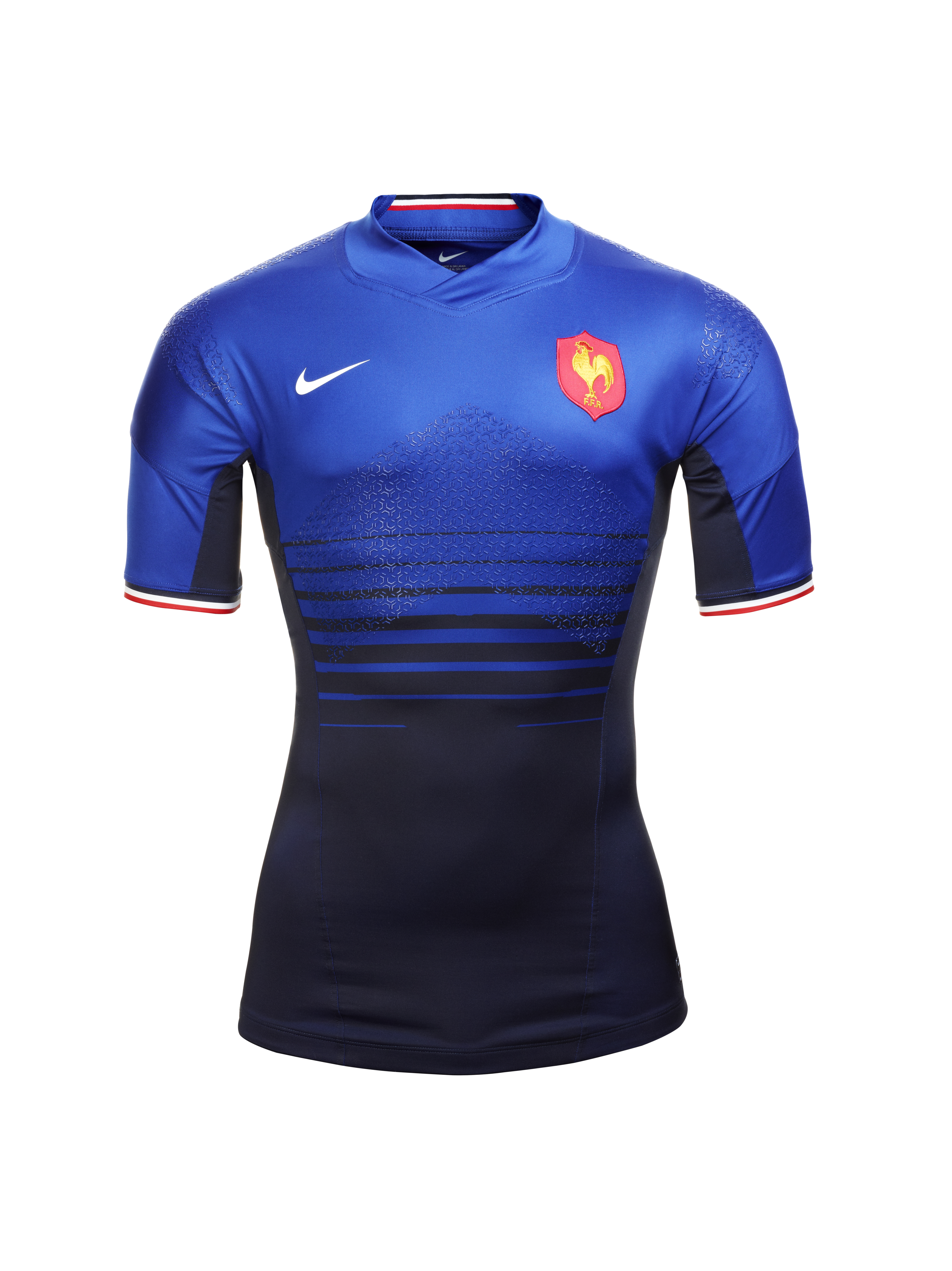 The home kit draws inspiration from the jerseys worn by the French Rubgy team for two famous victories over the All Blacks in 1999 and 2007.