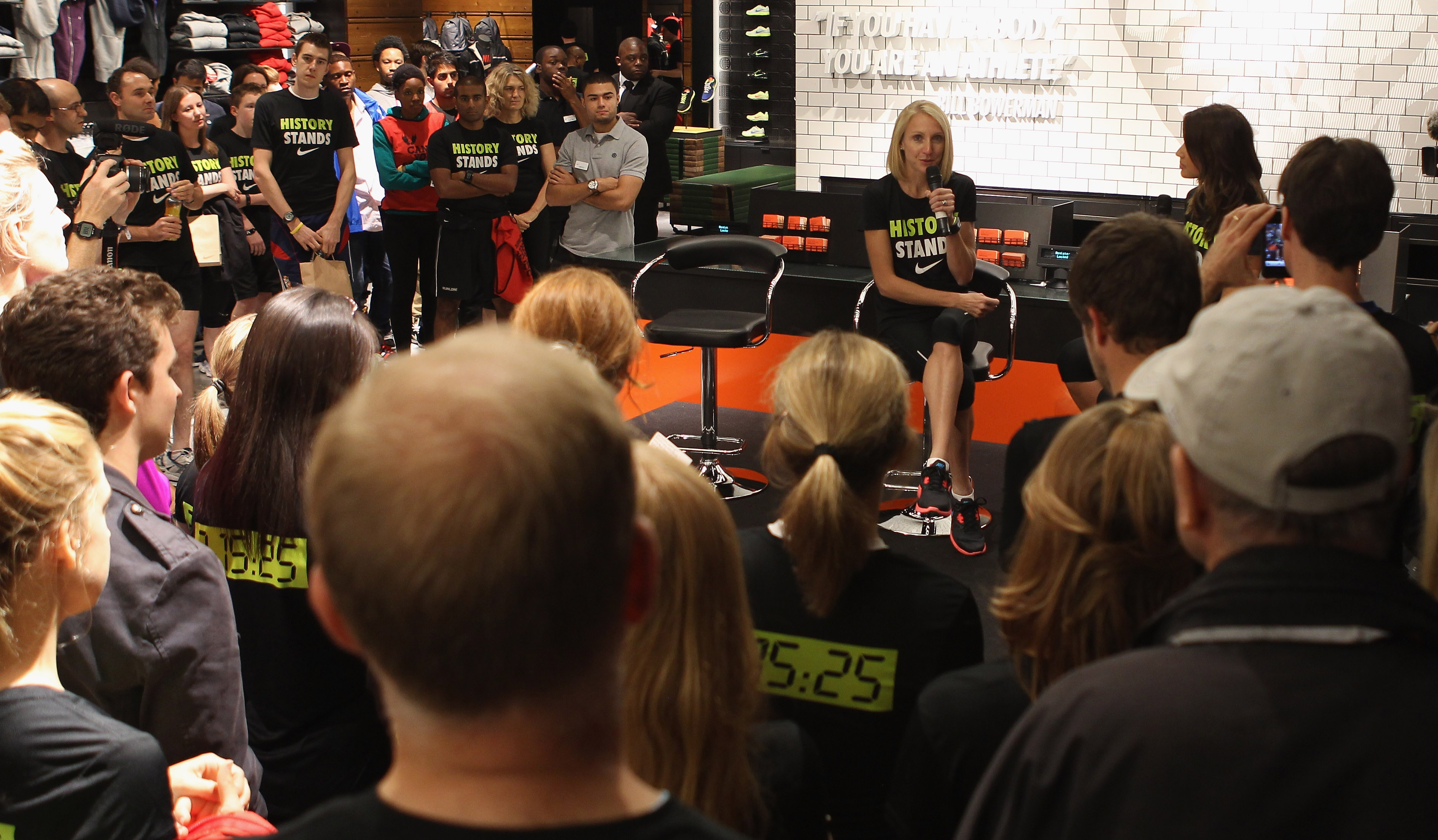 Paula Radcliffe at the Nike+ Run Club launch Stratford, where she rallied support for #HISTORYSTANDS. Together with Nike, Paula is campaigning for the IAAF to reinstate her 2003 marathon world record title.