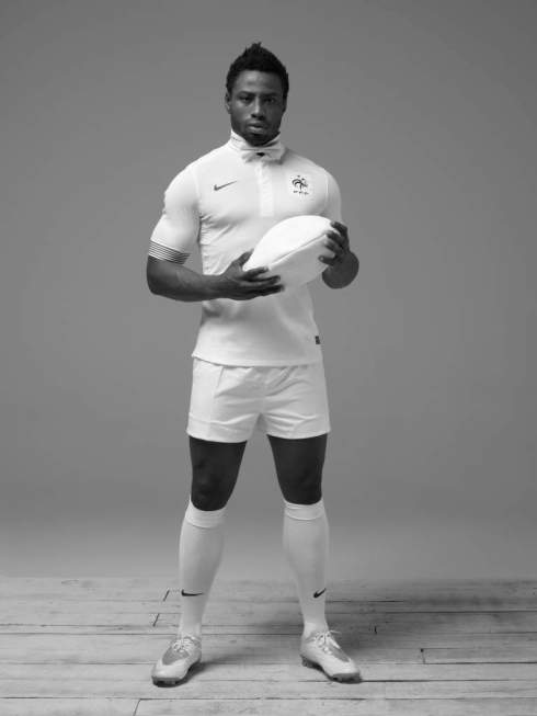 Sporting legends Carl Lewis and Steve Nash, French rugby player Fulgence Oeudraogo, of France and Montpellier, plus Eric Judor, actor and director, also donned the French team’s new away strip for the photo shoot.