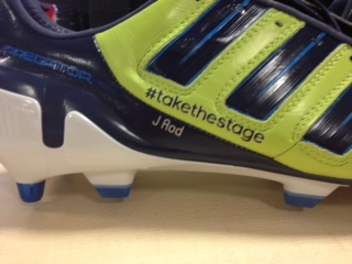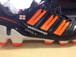 adidas sponsored players including Gerrard, Bale, Young, Barry, Rodwell, Defoe and Stuart Downing will all take to the pitch in boots which will include their name and the campaign hash tag #takethestage to set this weekend’s fixtures alight.
