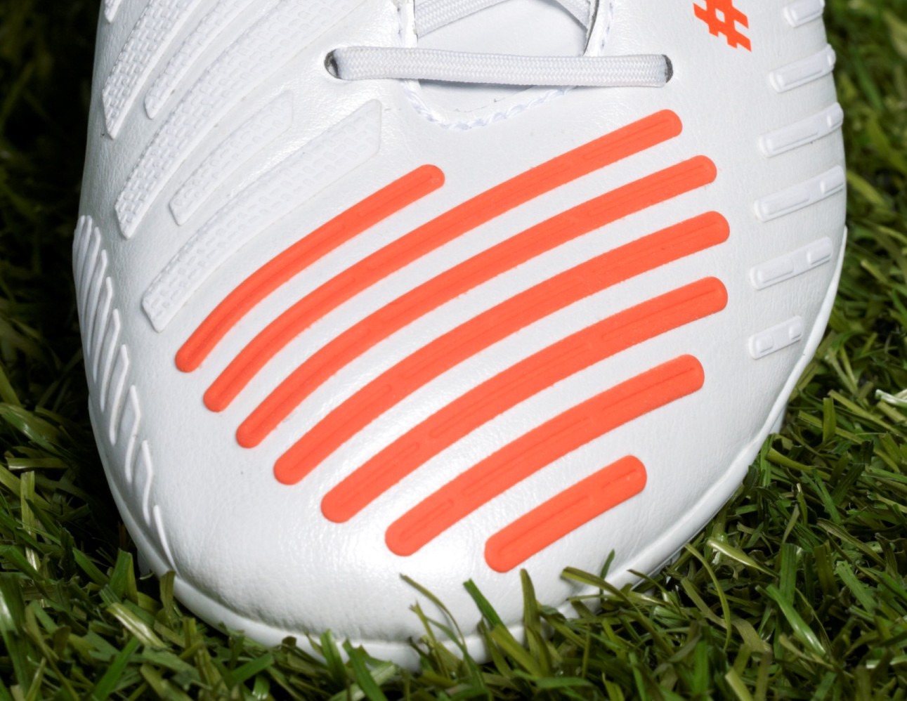 The first zone revealed by adidas is the large contact surface area on the forefoot with recessed ribs creates a vacuum effect for instant control, cushioning and stopping the ball immediately.
