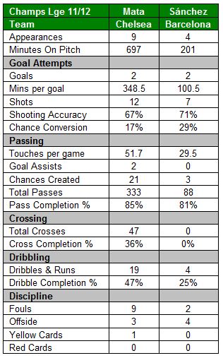 Juan Mata and Alexis Sanchez have impressed in their first seasons with their respective new clubs, but it is Mata that has already become an integral part of his team in the Champions League. He has played 697 minutes to Sanchez’s 201 and Castrol EDGE Performance data shows he touches the ball 52 times per game, which is more than his teammates Didier Drogba (37) and Frank Lampard (48) and over twenty times more than Sanchez (30).