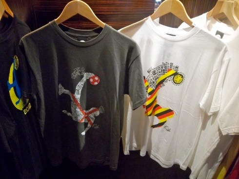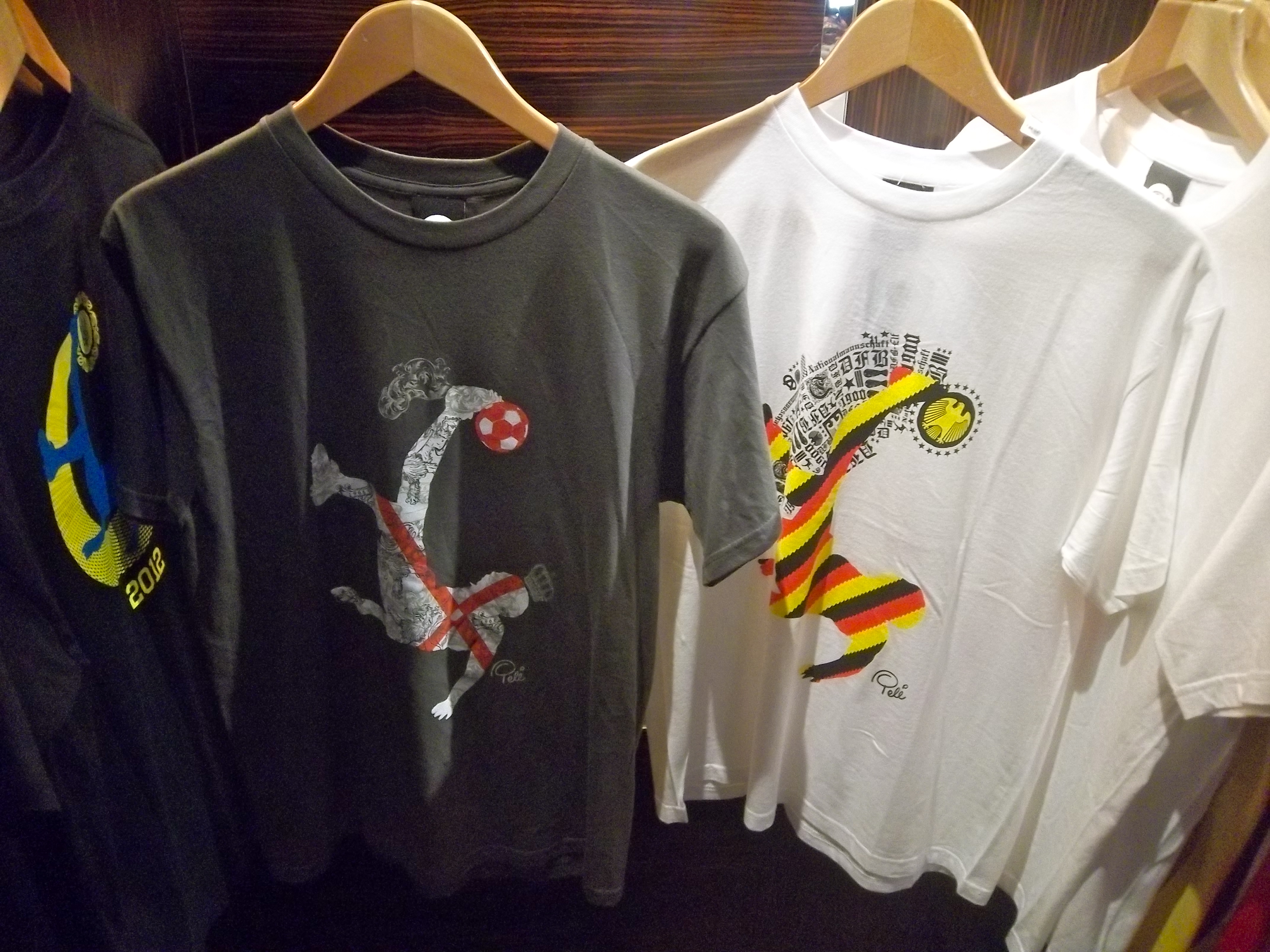 Just in time for Euro 2012, Pelé Sports have released patriotic t-shirts to help you support your country through the tournament. Each t-shirt uses the image of a footballer pulling off a bicycle kick with the national colours helping to illustrate the acrobatic body.