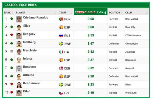 Castrol EDGE Index UEFA EURO 2012 Best XI of Group Stage