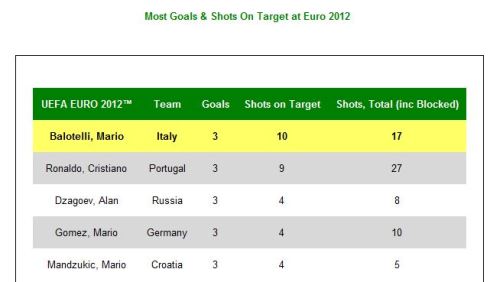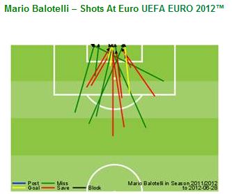 Indeed, only Portugal’s Cristiano Ronaldo has mustered more shots overall at EURO 2012 than Balotelli, as the muscular hitman starts to rediscover his best form for the Azzurri.