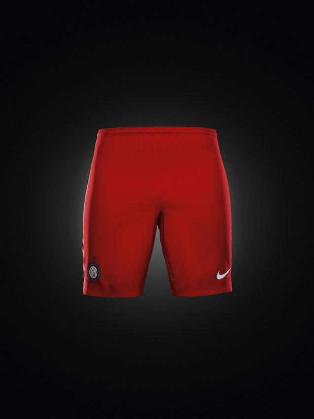 The shorts are totally red with ‘Inter’ on the back of the waistband and a snakeskin pattern representing ‘Il Biscione’ along the side seam.