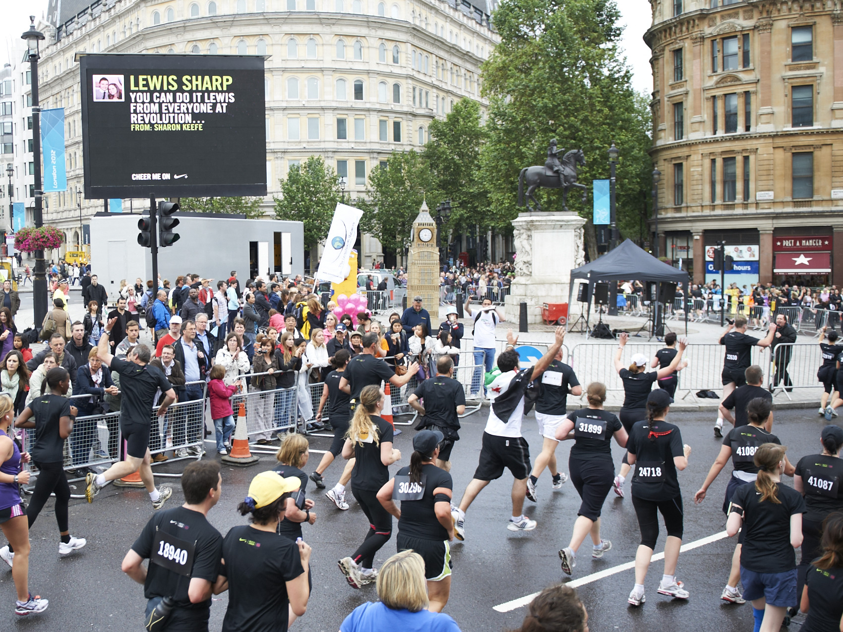 Entrants signed up to the British 10K App pre-race, enabling their friends and family to cheer them on with personal messages sent via Facebook and displayed live on giant digital screens.