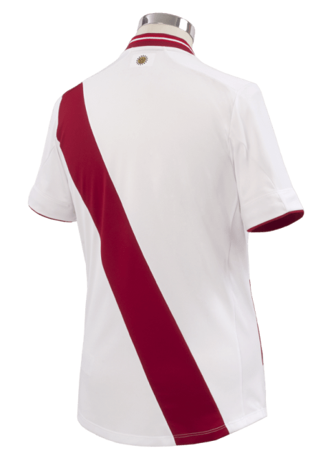 The white shirt features the red sash across both the front and back of the shirt, an iconic part of Peru’s football shirts for a number of years.