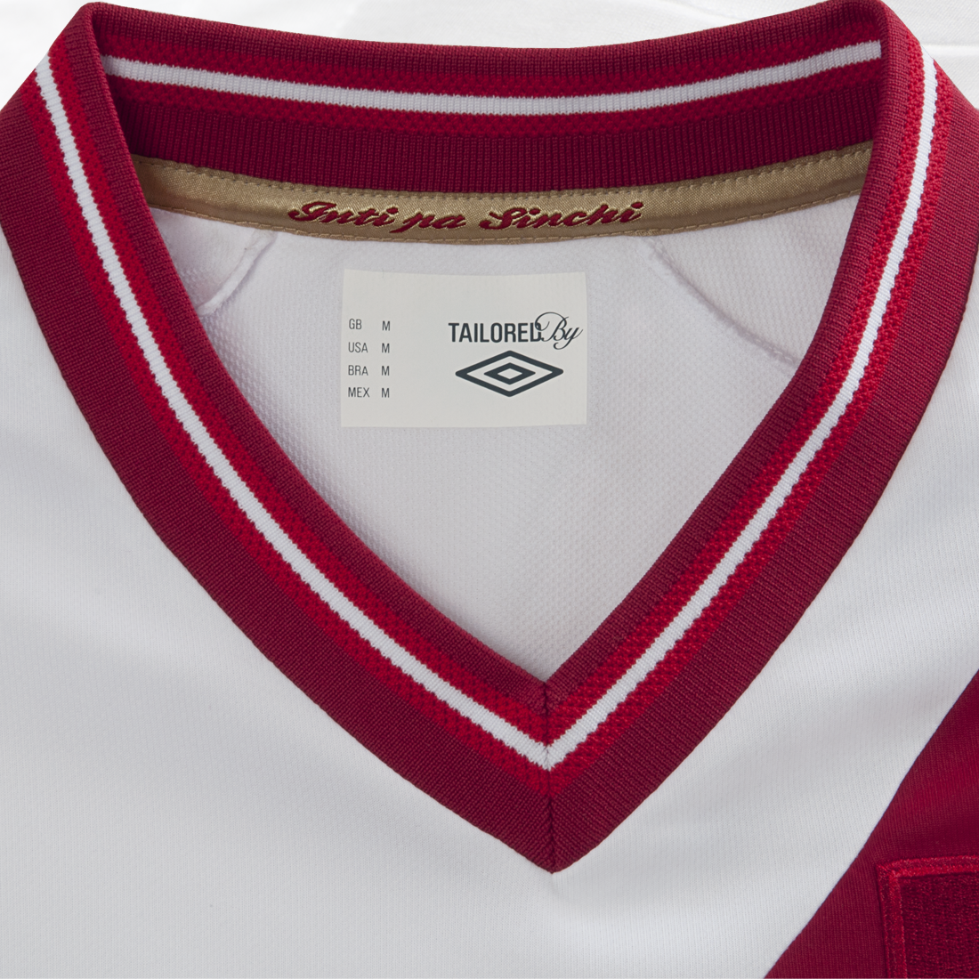 The shirt also features a sun symbol embroidered on the back of the neck, a subtle reference to the ancient civilizations that were the founding fathers of what is known as Peru today.