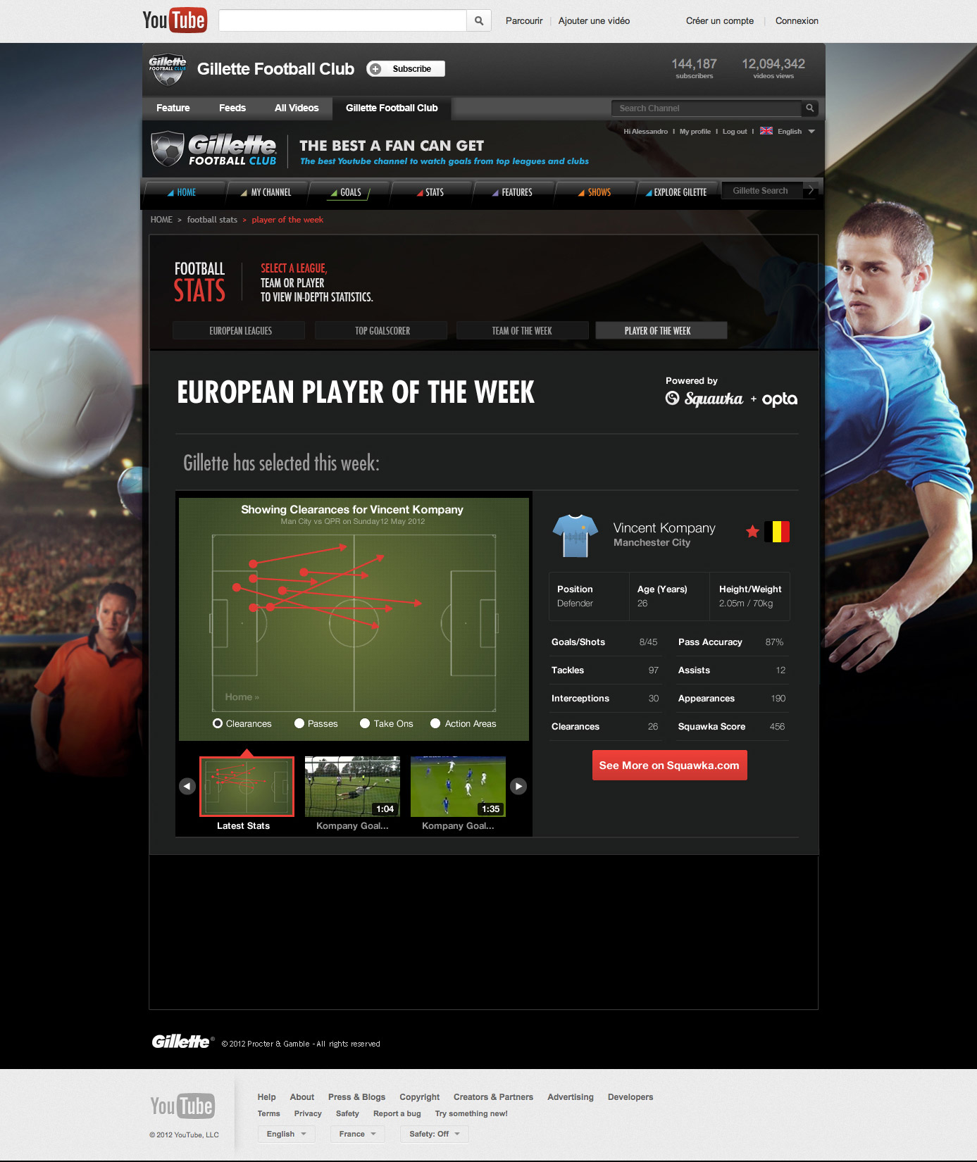 Gillette Football Club is now the largest content sponsorship on YouTube with High Definition highlight video from 21 leagues and 80 clubs (numbers that Google assures are growing).