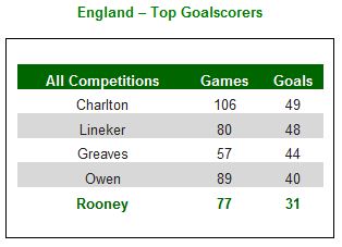 Friday night also proved to be a significant personal night for Rooney. The England man’s double salvo took his total international goal haul to 31, ahead of Tom Finney, Nat Lofthouse and Alan Shearer (all 30). The Manchester United man will now surely have his eyes set on becoming the first England player to rack up half a century of international strikes.