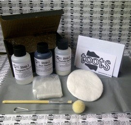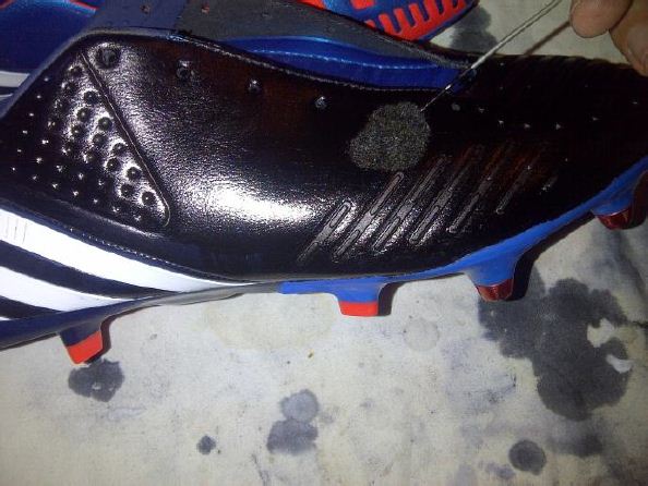 This is the part where you use a flat head brush as well as the dauber to neatly fill in the boot with the dye.
