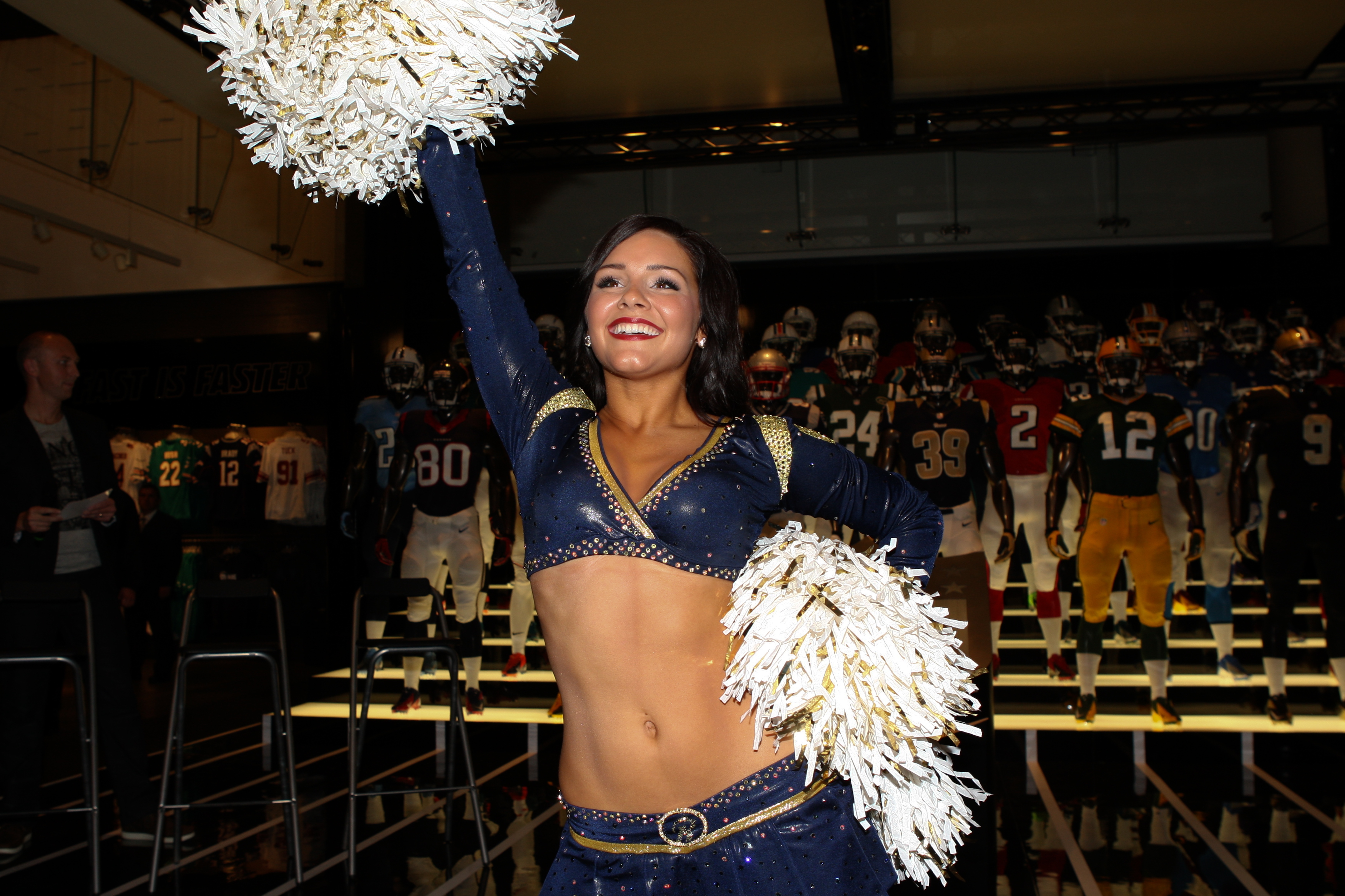 And we were lucky enough to catch up with Rams legends Marshall Faulk, Jackie Starr and Tory Holt – on top of gawping at a routine from the Rams’ cheerleaders… (tough job. Maybe.)