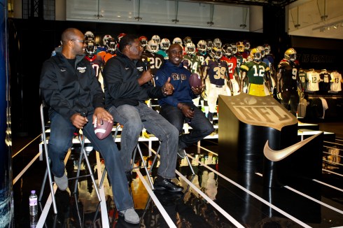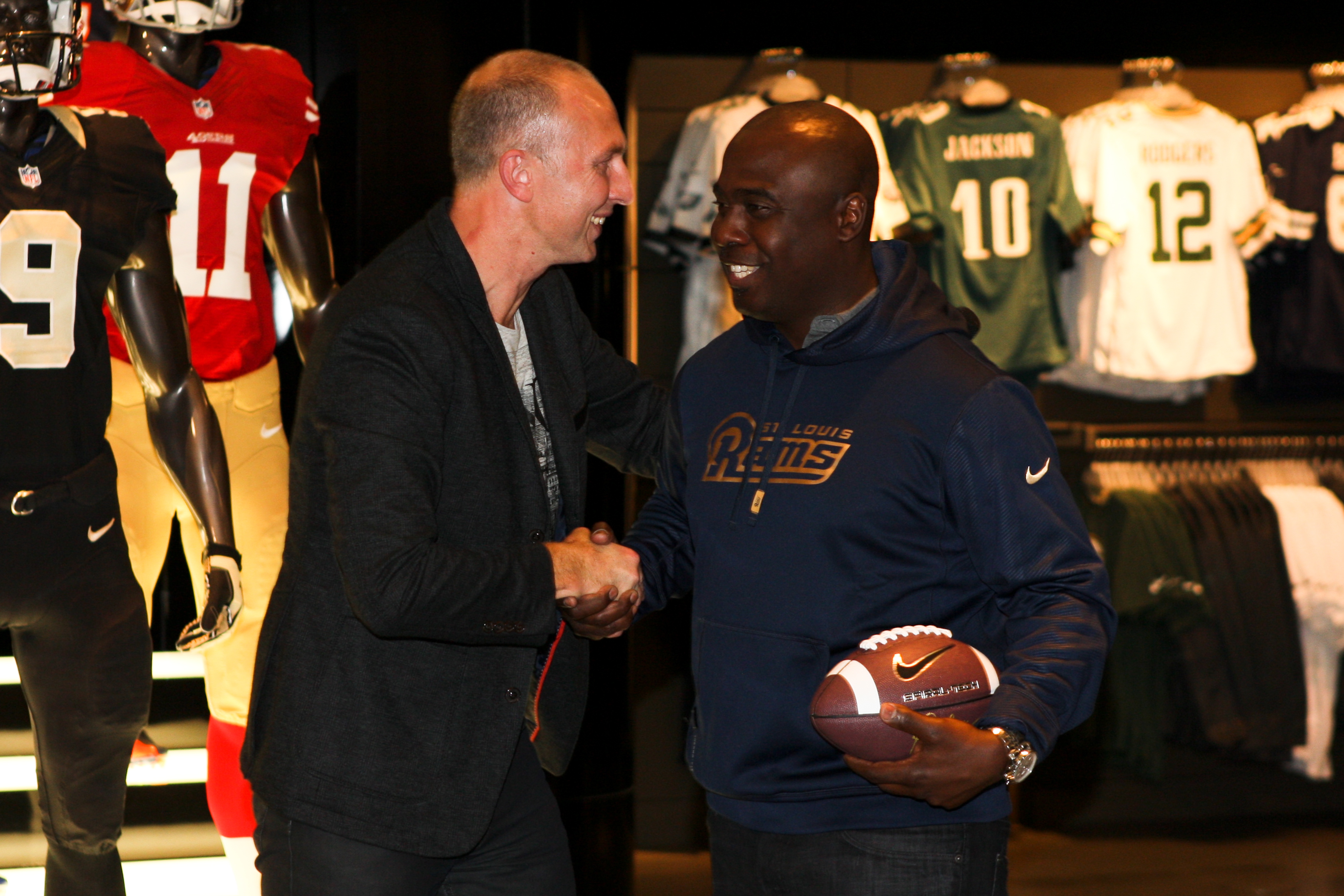 Marshall Faulk, Torry Holt and Jackie Slater were speaking at NikeTown London ahead of the NFL International Series this weekend between the St.Louis Rams and New England Patriots. Visit the Nike’s Flagship Oxford Street store for more information as Nike continue to deliver the ultimate International football experience.
