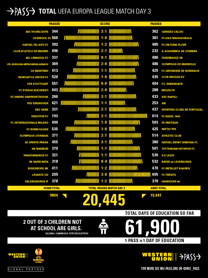 After the third match day of the Europa League last week, Sport-locker.net have been sent some cool passing info as the Western Union PASS campaign kicks into gear.