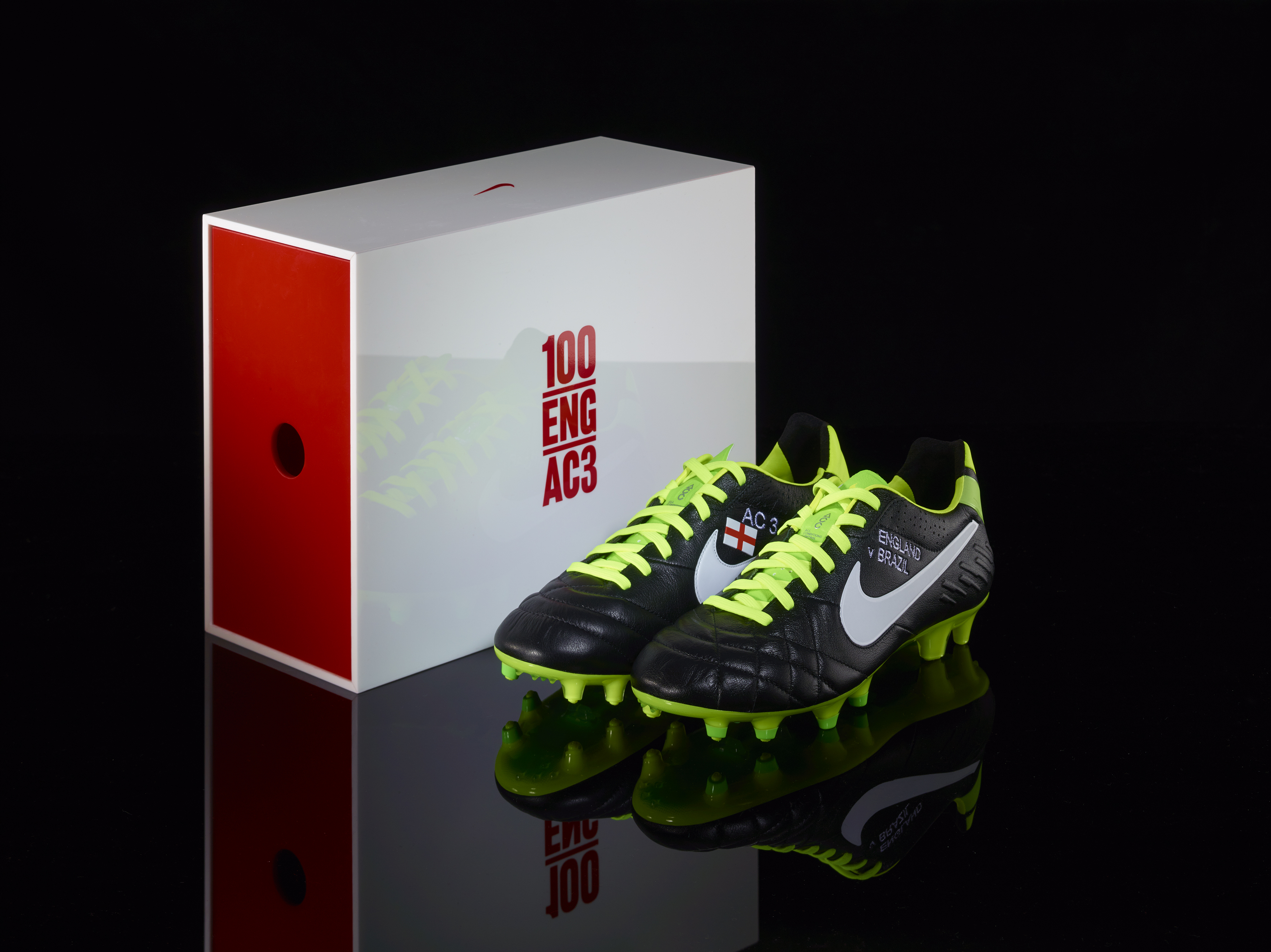 To mark the occasion Cole will be wearing a pair of personalised Nike Tiempo Legend IV boots which have been embroidered with St George’s cross, AC 3, “England vs Brazil” and “100th Cap”; all messages designed to celebrate his achievement.