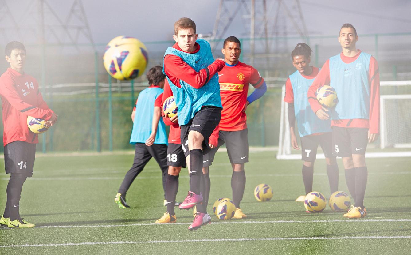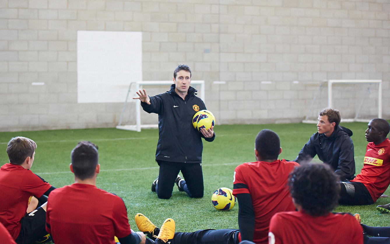United’s reserve team coach Warren Joyce welcomed the finalists and quickly turned them loose for a short, sharp and possession-focused session straight off the plane.