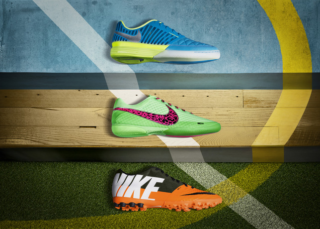 Three new shoes, Nike Bomba Finale II, Nike Elastico Finale II and Nike Lunar Gato II deliver design innovation that allow players to amplify their skills on specific surfaces. Each shoe is created to provide a balance of speed, control, comfort and precision based on varying court surfaces.
