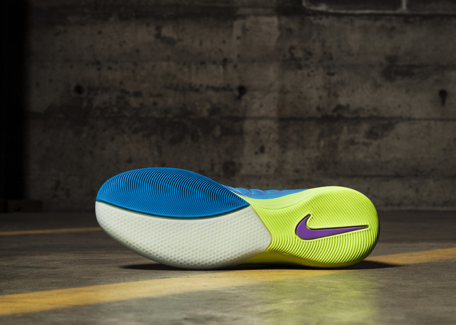 The more flexible outsole, designed for hard-court surfaces, features a herringbone and dot design to help maximize traction and improve underfoot ball control.