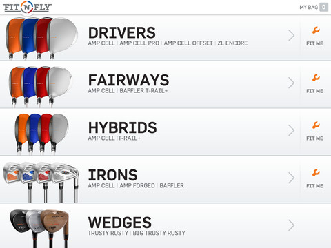 Fit N Fly is also actively tied into social media, with the ability for a user to Tweet, Facebook or e-Mail friends recommended individual clubs or their full bag.