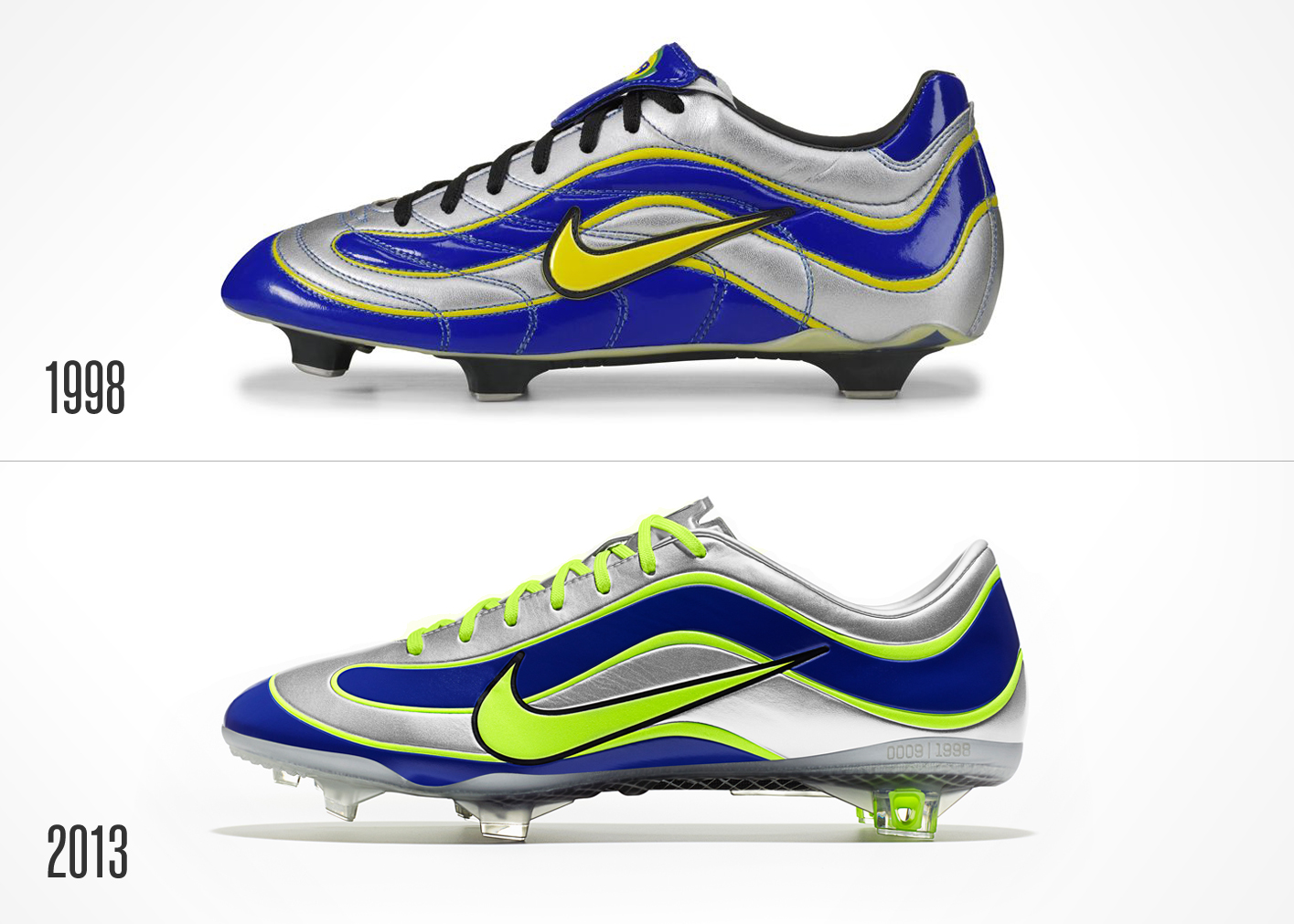 “Ronaldo’s impact on the game 15 years ago was immense, and in the run up to 2014, we wanted to celebrate that boot and the man himself. We thought a modern construction of his 1998 boot would be a great commemoration of that moment.” said Phil McCartney, VP Nike Football Footwear.