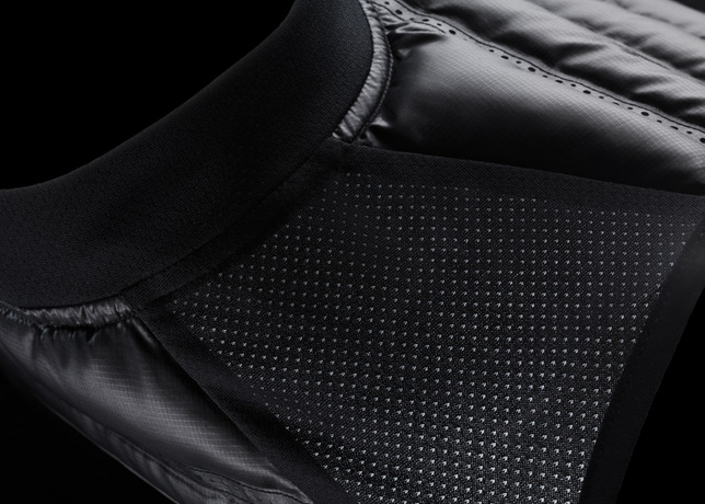 Movement activates ventilation in the vest, allowing heat to escape the body through laser-cut holes situated between the down chambers.