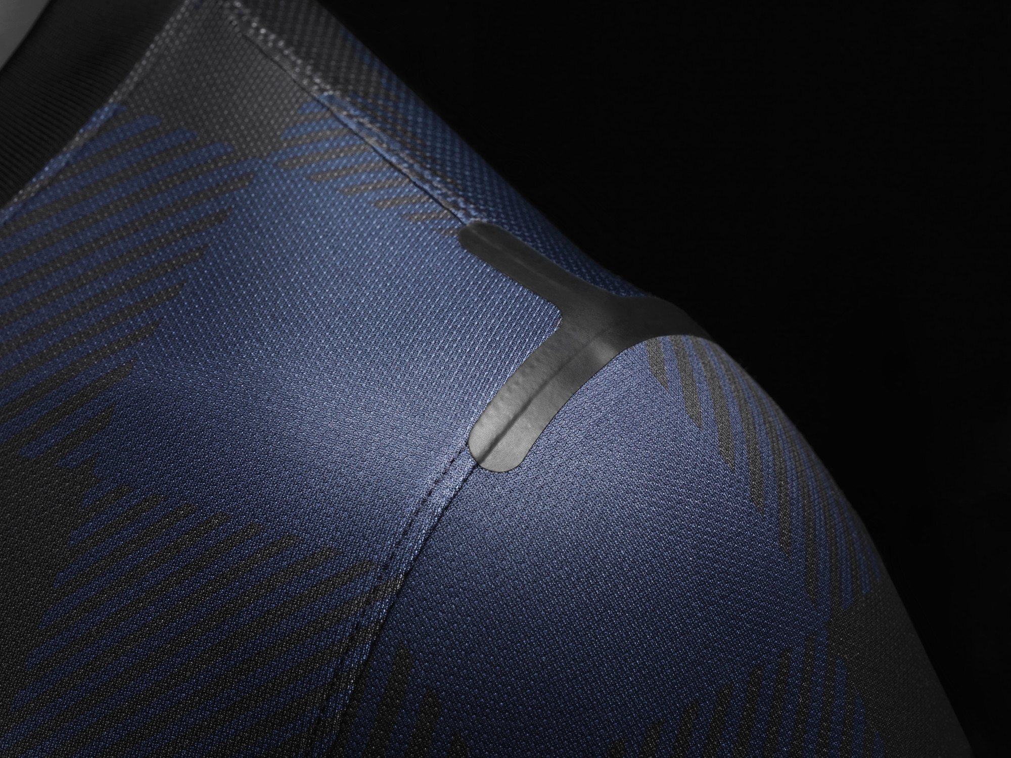 The club crest at the heart of the jersey is an embroidered monochromatic midnight navy and white.