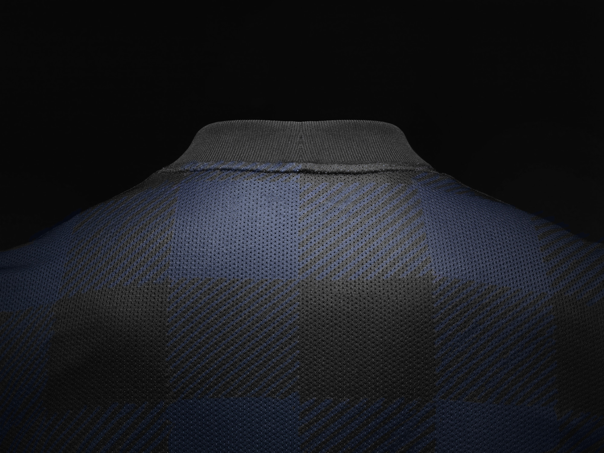 The shirt’s large black and midnight navy gingham checks represent Manchester’s proud industrial past when the check was produced in the city’s booming cotton mills in the 18th century.