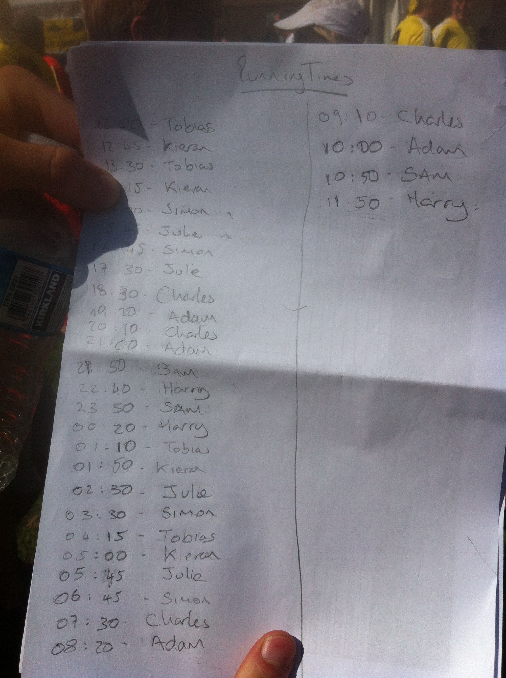 But Ciaran was there. Like he was at every changeover. For 24 hours. Hats off to that man. He really did put the I in team. (Apologies for that Team America gag). But in all seriousness he made us feel like a family.