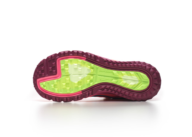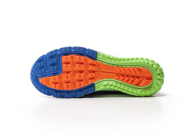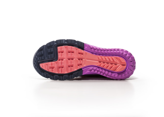 The shoe’s midsole is designed with a lower offset (4mm) – the amount the cushioning drops from heel to toe – which promotes a more natural range of motion and optimal stride. A co-molded midsole foam adds more protection and snap off the trail.