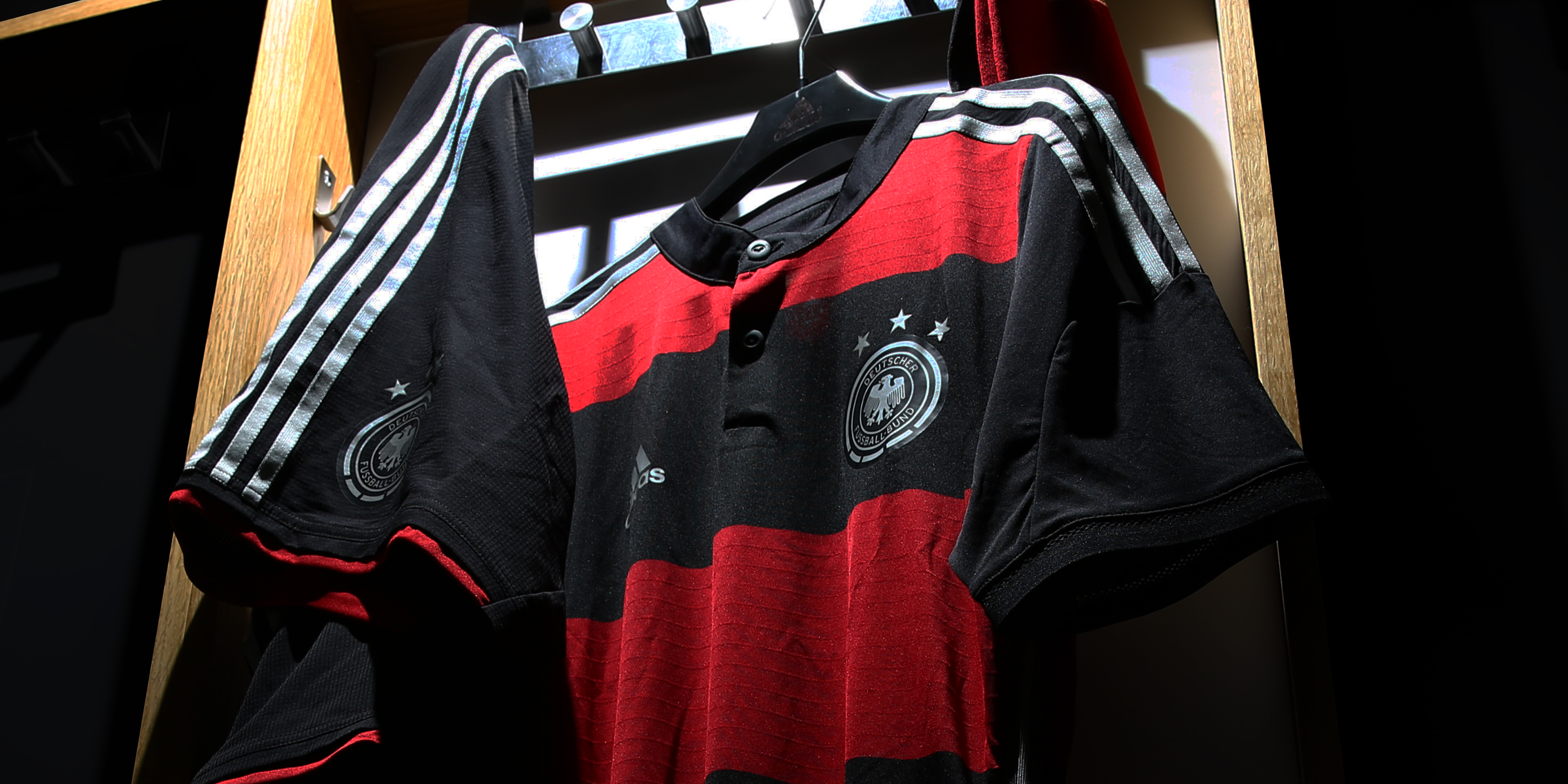 At the 2014 FIFA World Cup in Brazil, national coach Joachim Löw’s team will play for the first time in shirts with black & red horizontal stripes. Özil, Schweinsteiger, Müller & Co. will complete their new outfit with black shorts and black socks.