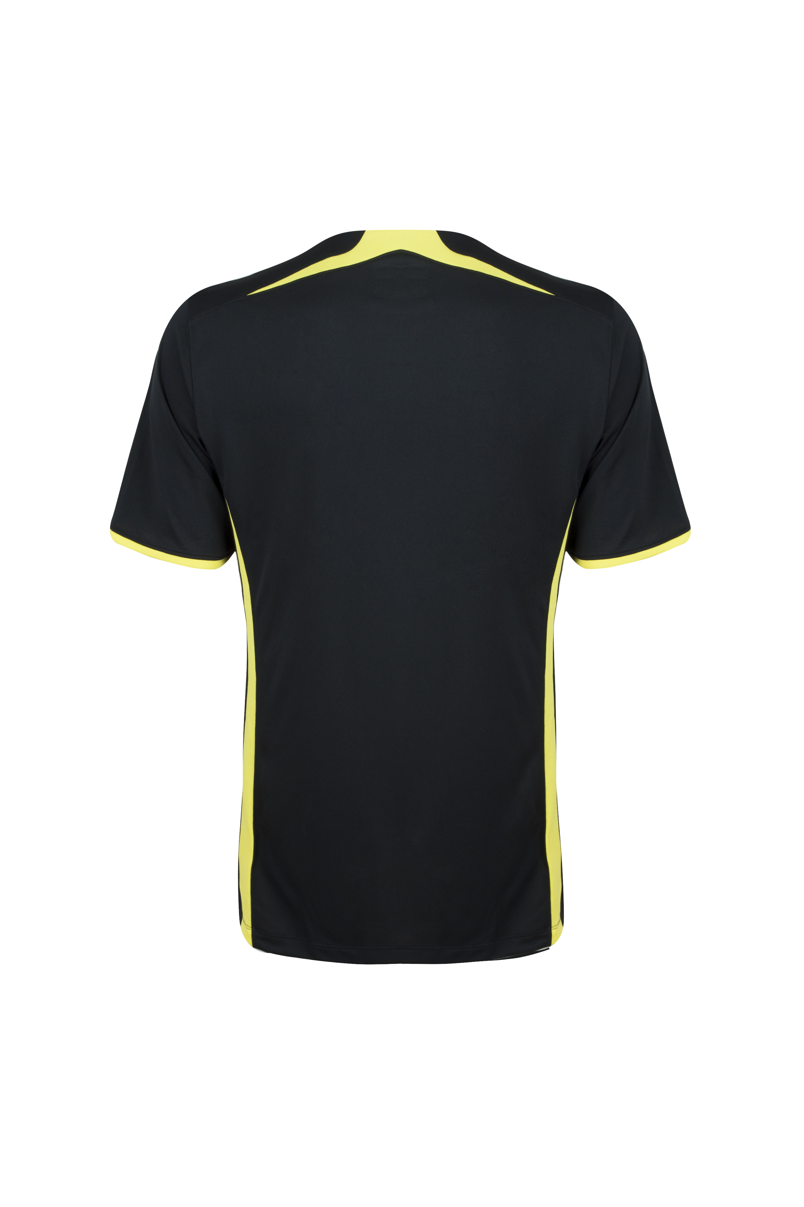 Yellow taping is also replicated along the sides of the accompanying black shorts and socks.