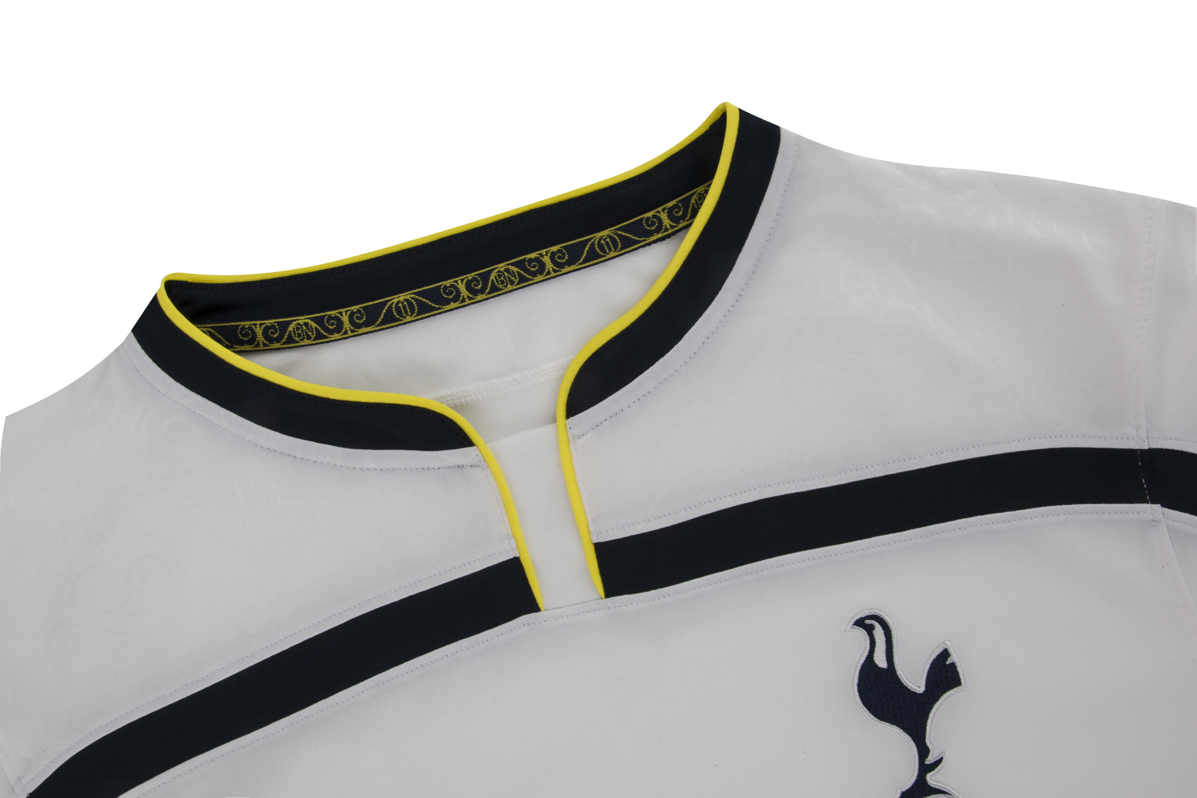 A jacquard runs across the shoulders which includes the words ‘Echo of Glory’ taken from Bill’s quote together with a pattern inspired by the famous Bill Nicholson gates which lead up to White Hart Lane stadium on Bill Nicholson Way.