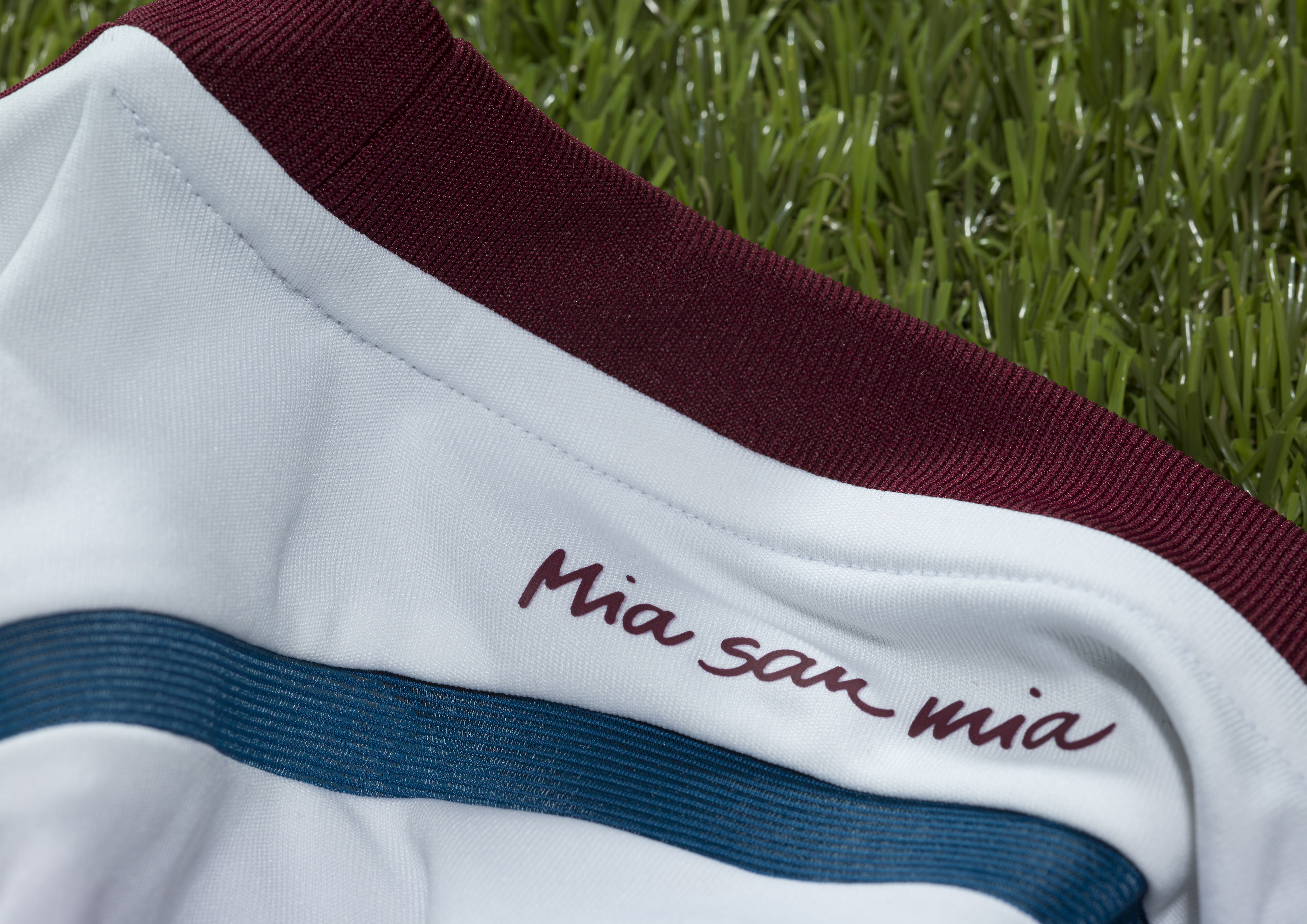 Like the home jersey, the back neck of the away jersey also boasts the now famous ´Mia san Mia´ wording – the German motto that all Bayern fans proudly know by heart and which means ´We are who we are´ in English. Additionally, the “Bayern München“ wording is also already applied on the back panel of the kit.