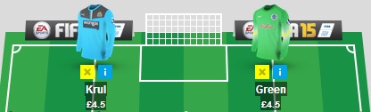Some managers opt for an expensive stopper and then include the cheapest possible replacement on the bench to free up cash – for example, Courtois (£6m) and Gilks (£4m) as a combination. While this can be a useful method, I personally prefer to include two mid-priced ‘keepers to use in rotation, such as Krul (£4.5m) and Speroni (£5m). This way, if it looks like your goalie might be in for a peppering you can always swap him out for somebody who also plays regularly.