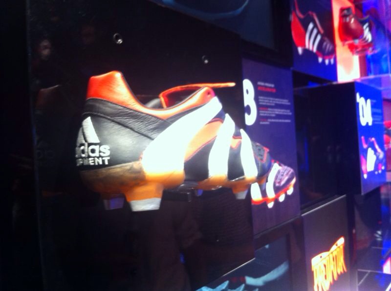The store walls were lined with a timeline of the Predator boots, starting with the original adaptation designed in 1994, originally designed by former Liverpool midfielder Craig Johnston. The boot was only manufactured by Adidas after Johnston, turned down by manufacturers elsewhere, took a video of Beckenbauer and Rummenige at Bayern Munich using the boots. And so the legacy was born.
