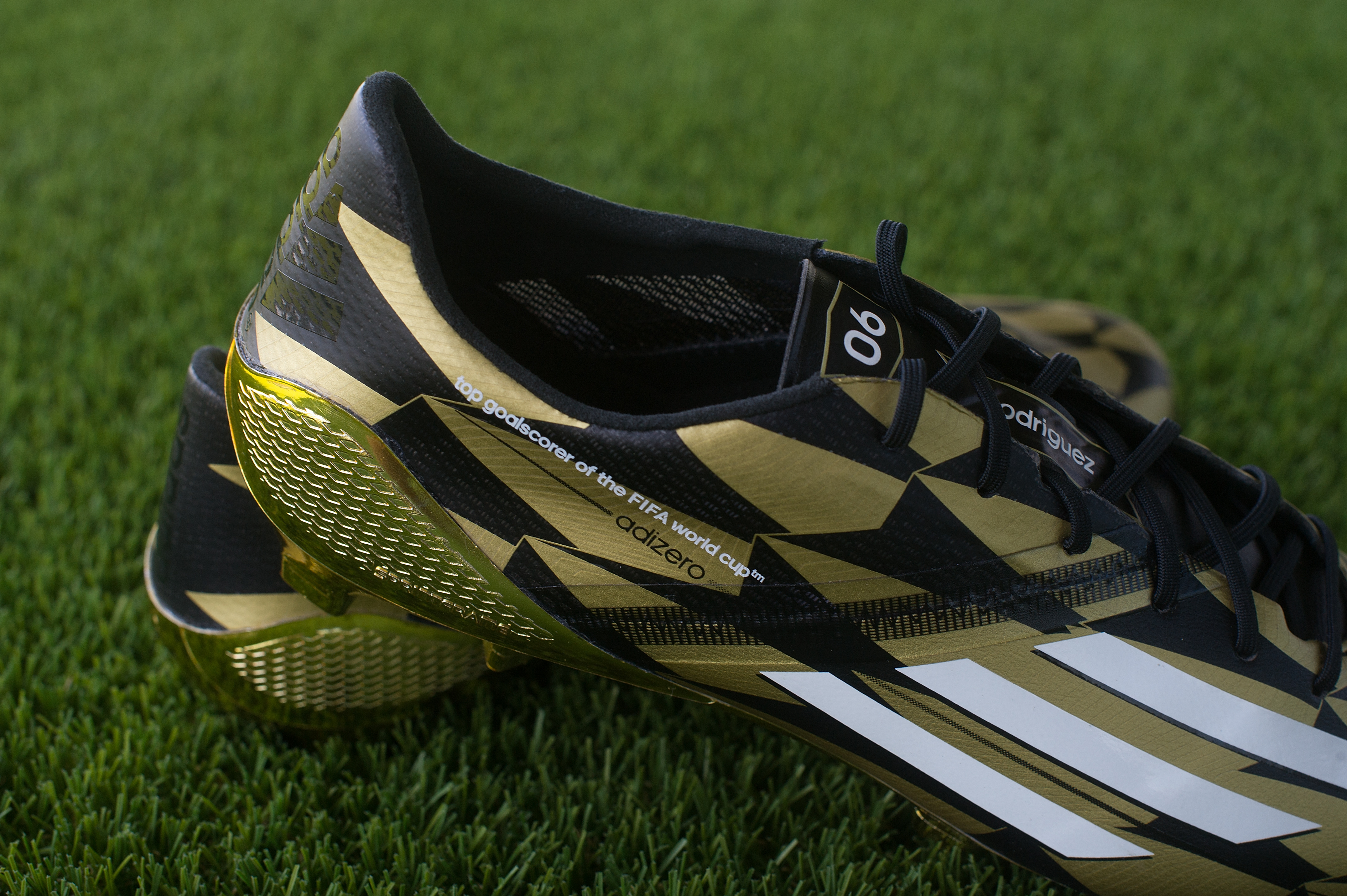There are only six pairs of the miadidas golden boots in existence, one for each goal scored by Rodríguez during the tournament, and the boots include a special customisation on the side reading “top goalscorer of the FIFA World Cup”. The adidas adizero f50, as worn by players such as James Rodríguez, Leo Messi & Arjen Robben was the highest goal scoring boot of the 2014 FIFA World Cup Brazil.