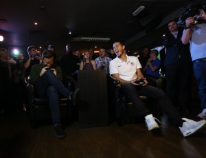 Olly Murs and Eden Hazard battle it out at the FIFA 15 UK launch!