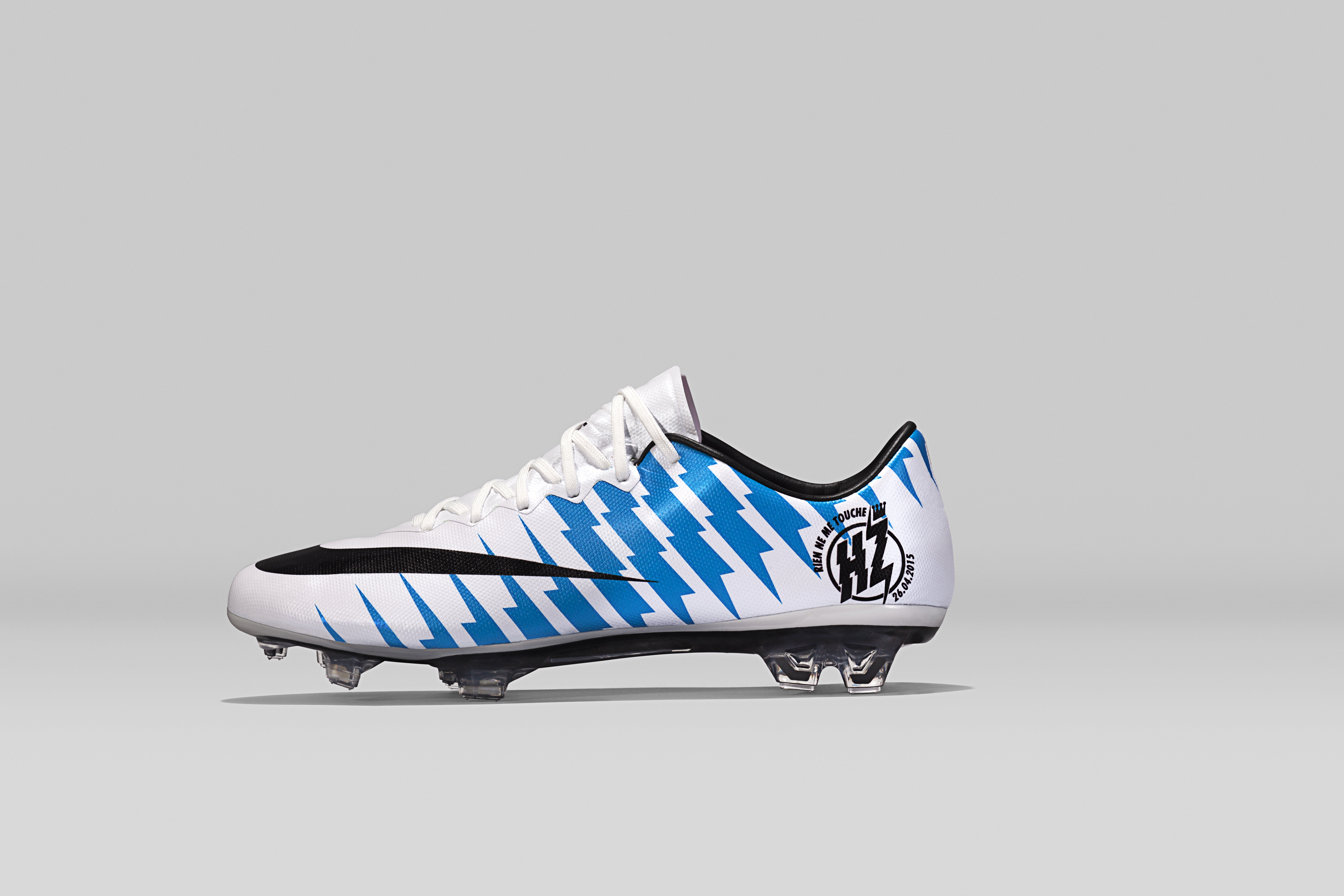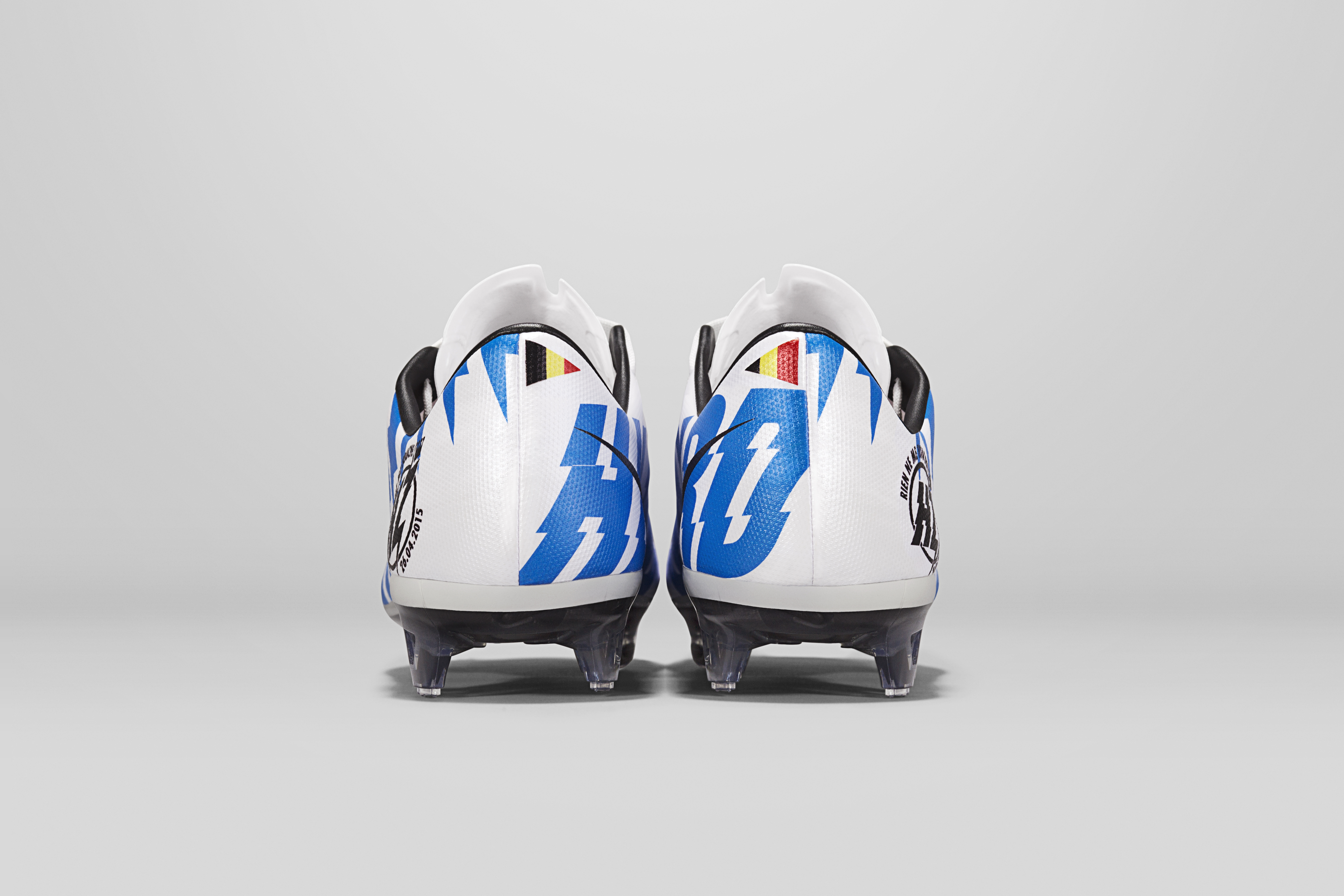 Drawing inspiration from Hazard’s trademark ability to electrify the game with pace, flair and trickery, the Nike Football design team created a white Mercurial Vapor X that illuminates through streaks of royal blue lightning bolts.
