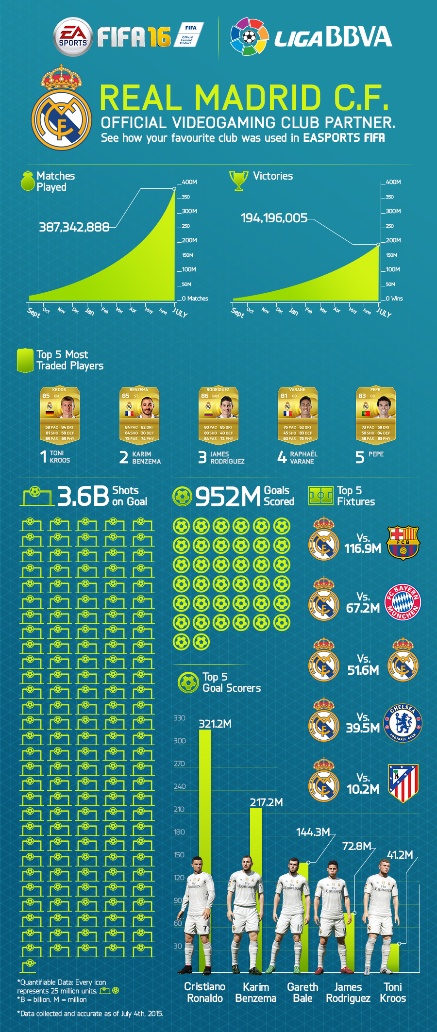 Emilio Butragueño, Director of Institutional Relations, Real Madrid C.F., said “We’re delighted to be working with EA SPORTS as our official videogame partner. They’re the market leading brand in football videogames and we can’t wait to start working together to give both our fans unforgettable experiences. Many of our players are big FIFA gamers and I know they can’t wait to play FIFA 16.”