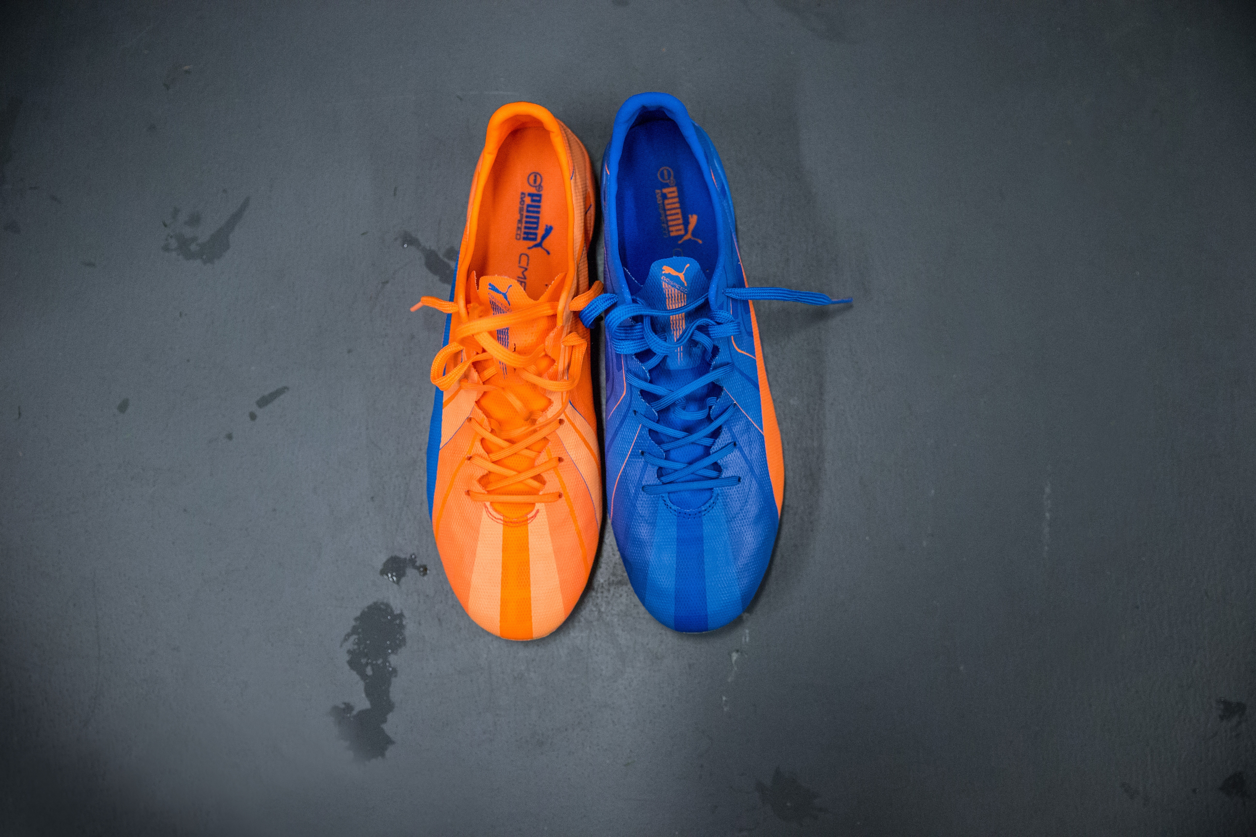 The Head To Head Duality colourway is applied to PUMA’s two football boot families, evoPOWER and evoSPEED. A selection of high profile players will wear one orange and one blue boot in up to three competitive club matches, representing either team evoSPEED or evoPOWER, which PUMA is now pitching against each other for a special competition.